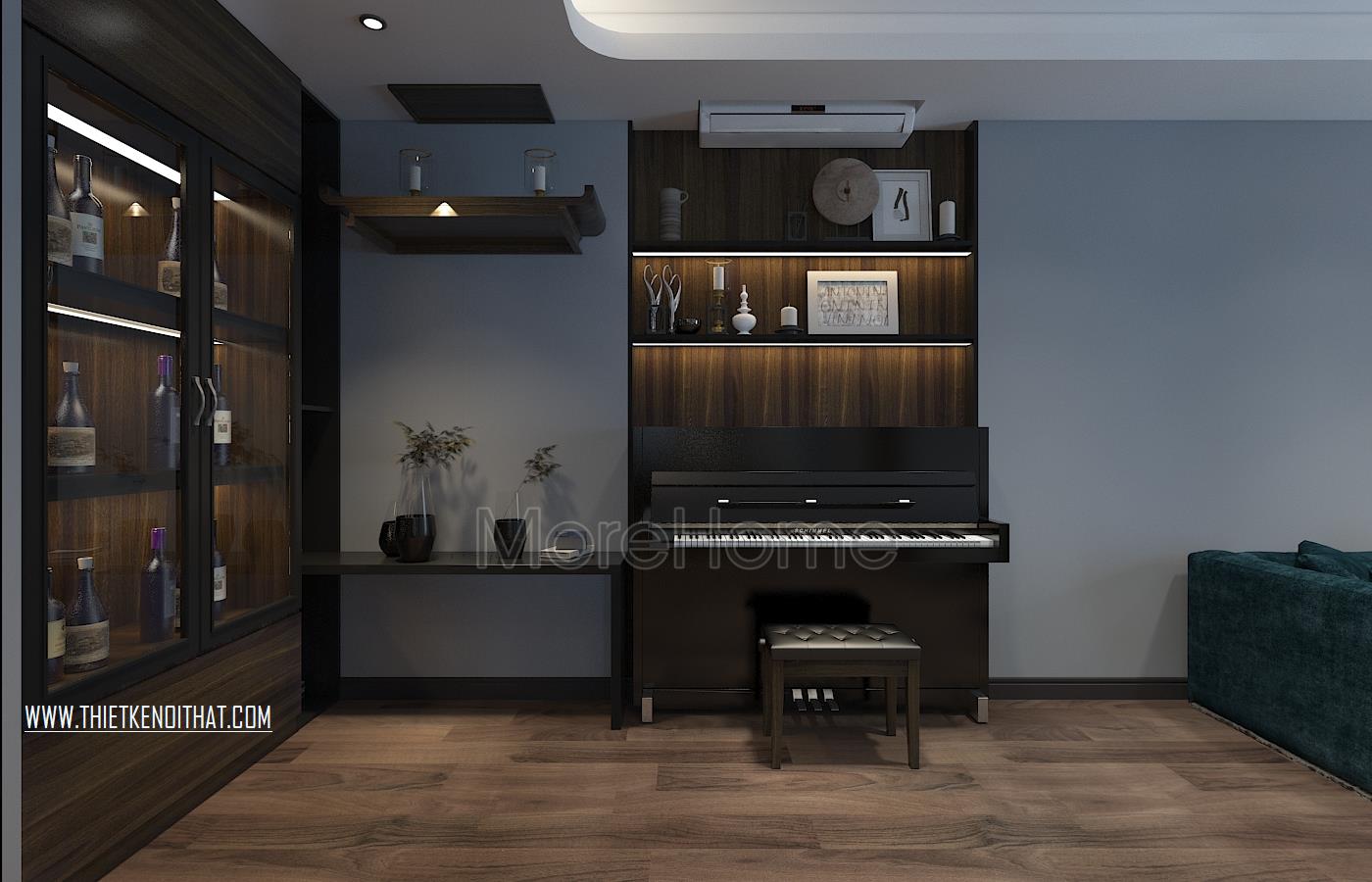 Bàn thờ treo tường hiện đại tại chung cư Ngoại Giao Đoàn được làm từ chất liệu gỗ Sồi nhập khẩu được treo đúng góc phong thủy của căn hộ chung cư, với kích thước lỗ ban là: 0.48*0.61 (sâu*rộng), khoảng cách từ bát hương xuống sàn nhà là 1m27 ( chiều cao tiêu chuẩn thuộc cung đại cát). Hiện nay, đa phần các sản phẩm bàn thờ chung cư đều được thi công lắp đặt kết hợp với tấm chống ám khói, điều này vừa là bảo vệ phần trần nhà, vừa mang tính thẩm mỹ cao.
