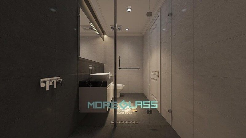 Mẫu cửa kính cường lực nhà vệ sinh MG-036 đẹp, an toàn, hiện đại.