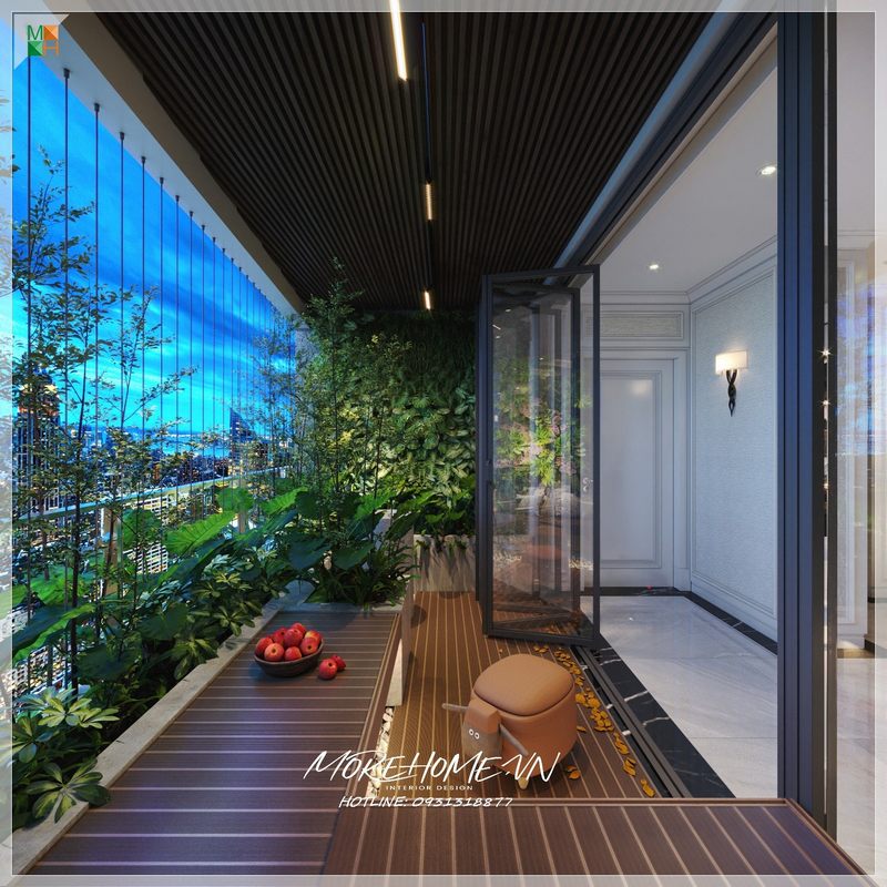 Với không gian thông thoáng nhờ vào cửa kính trượt trong suốt giúp ánh sáng lọt vào phòng dễ dàng và gia chủ có thể quan sát mọi vật xung quanh dễ dàng.
