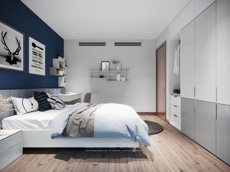 Mẫu thiết kế phòng ngủ đơn giản với nội thất bằng gỗ công nghiệp sơn trắng sang trọng phù hợp chung cư, nhà phố, biệt thự phong cách hiện đại