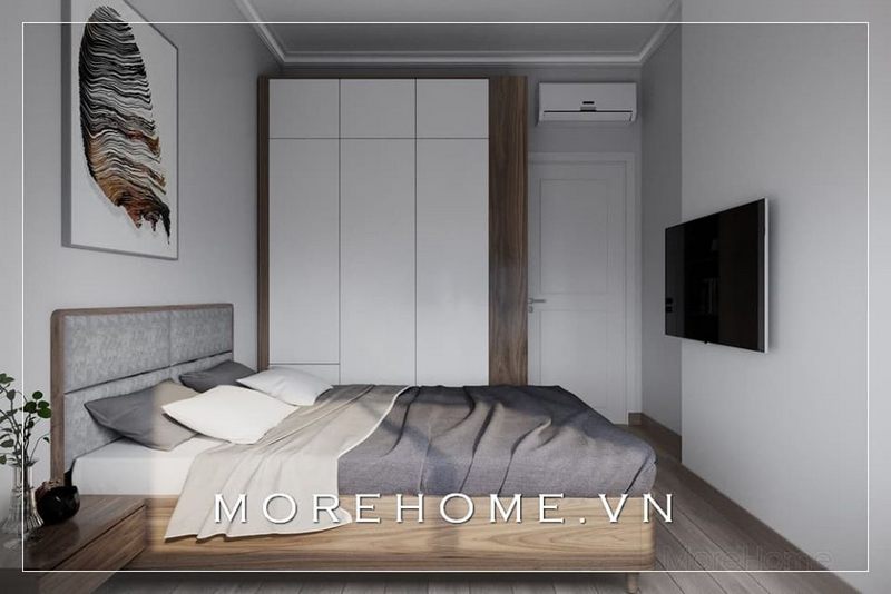 Thiết kế phòng ngủ chung cư tiện nghi, nội thất được sắp xếp hợp lý vẫn đảm bảo độ rộng thoáng cho căn phòng