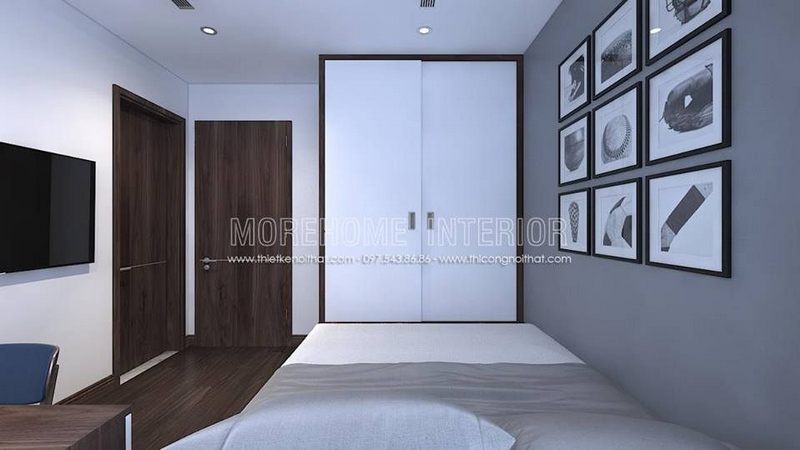 Phòng ngủ chung cư Vinhomes Gardenia kết hợp tủ áo vừa âm tường, vừa cánh lùa, tận dụng tối đa không gian