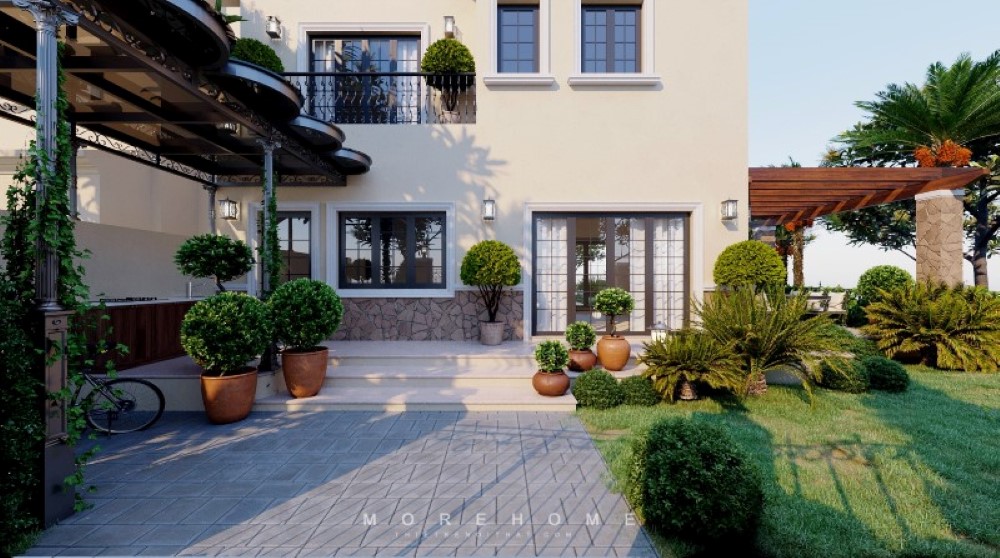 Thiết kế tiểu cảnh sân vườn quanh biệt thự sang trọng và có tính thẩm mỹ cao.