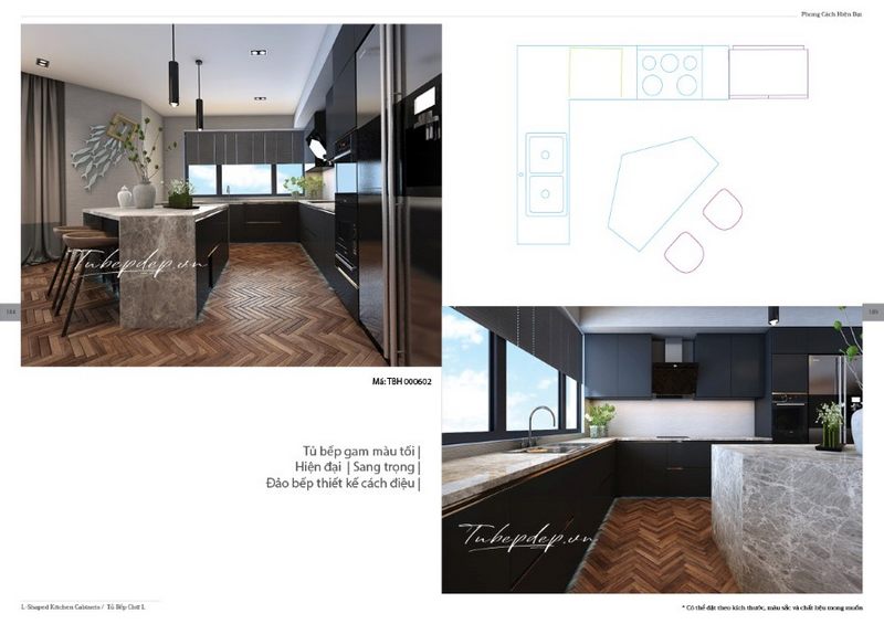 Thiết kế phòng bếp gam màu tối tạo chiều sâu và vẻ đẹp bền bỉ vượt thời gian đặc biệt phù hợp với phong cách hiện đại.