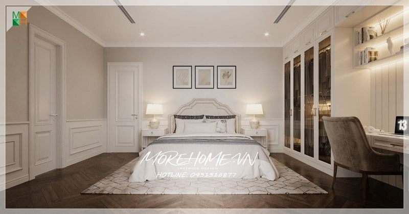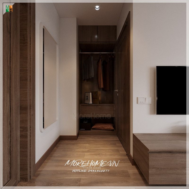 Tủ quần áo được thiết kế âm tường giúp phòng ngủ thoáng rộng hơn