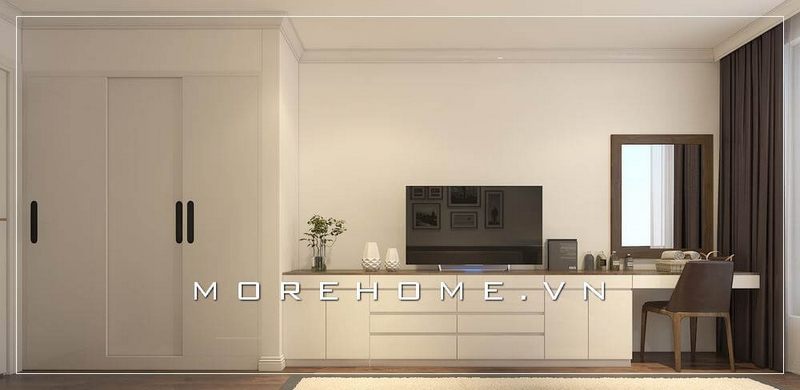 Thiết kế tủ áo hiện đại với gam màu trắng chủ đạo đầy tinh tế và trẻ trung