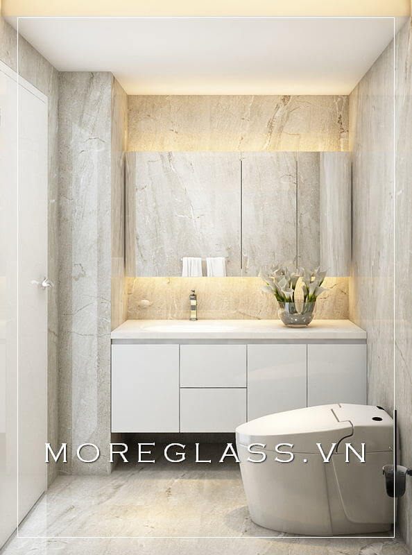 Tham khảo mẫu phòng vệ sinh nhỏ đẹp 3m2 kết hợp phòng tắm kính cường lực cao cấp gam màu trắng xám tính tế được nhiều gia chủ yếu thích và hướng đến.