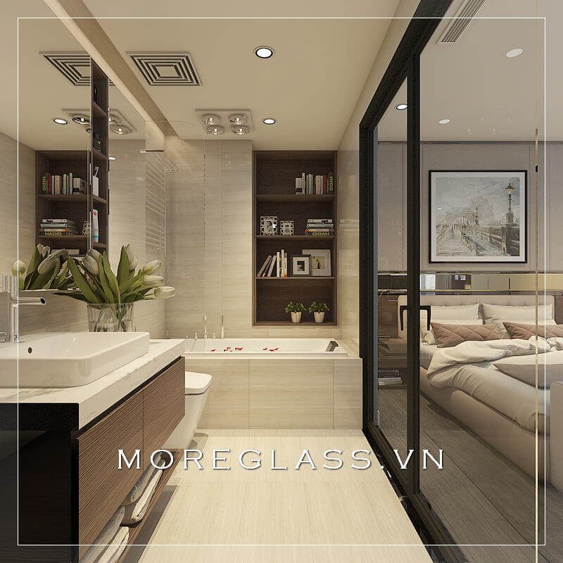 Cửa kính cường lực - cửa trượt cho phòng tắm nhà phố cao cấp
