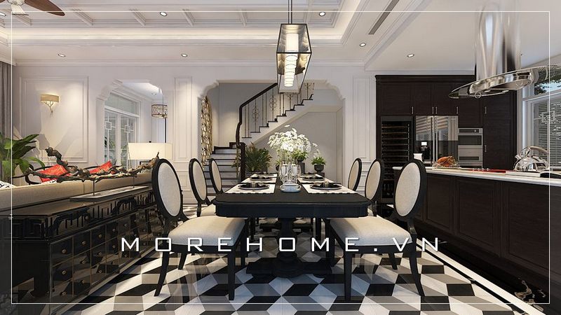 Phòng ăn nội thất được thi công bởi Morehome không gian tiện nghi thẩm mỹ cao.