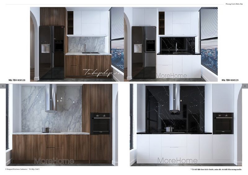 Trong một không gian bếp nhỏ của chung cư nên chọn bố trí nội thất hiện đại, thiết kế kịch trần tăng diện tích sử dụng