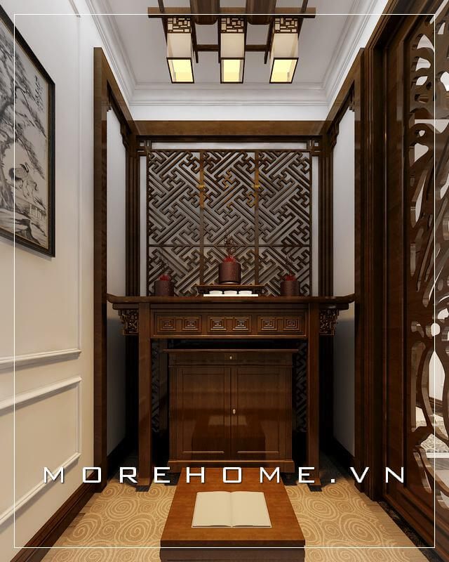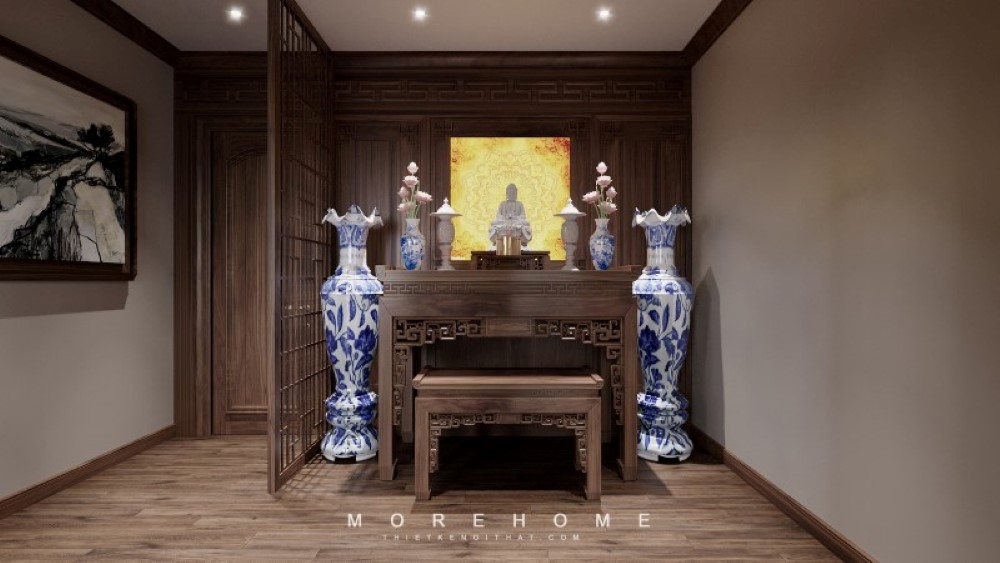 Vách cnc phòng thờ mang cảm giác riêng tư ấm áp sang trọng.